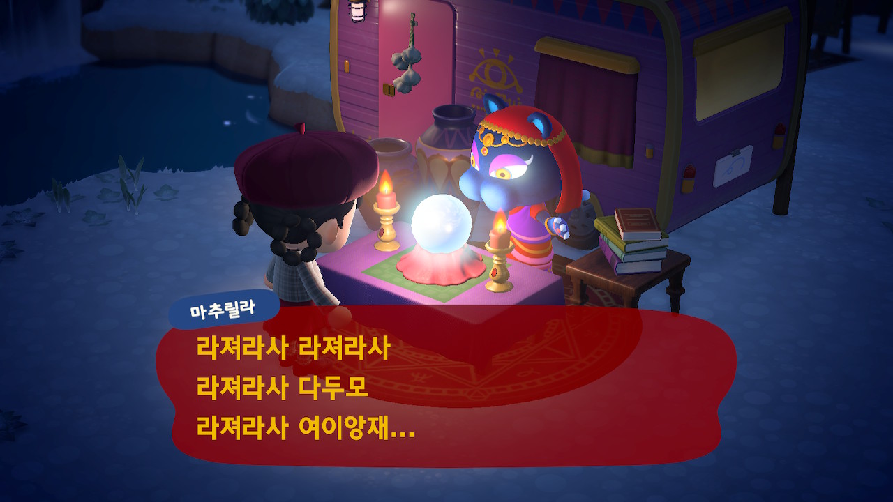 마추릴라는 예전 타동숲, 튀동숲때와 동일하게 하루 운세를 점쳐주는 특수주민인데요!