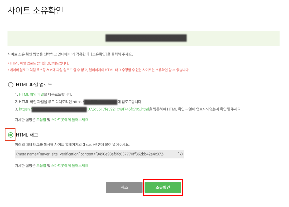 아래 메타 태그 등록 [내용을 입력하세요]라는 부분에 붙여넣어 주세요.
