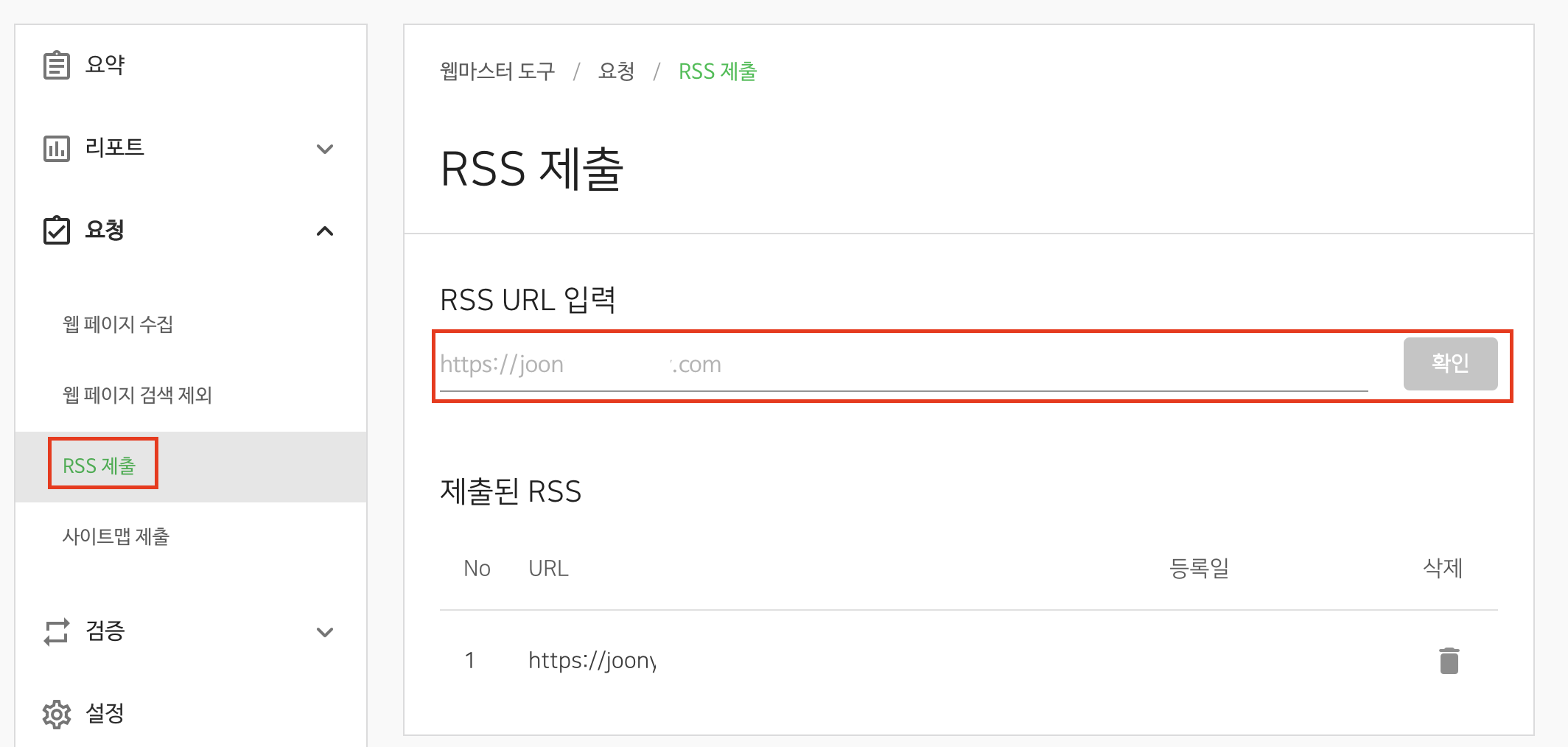 17. 왼쪽에 있는 요청 메뉴 클릭 > RSS제출을 클릭하시고,