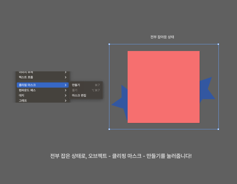 3) 오브젝트 - 클리핑 마스크 - 만들기를 눌러주시면