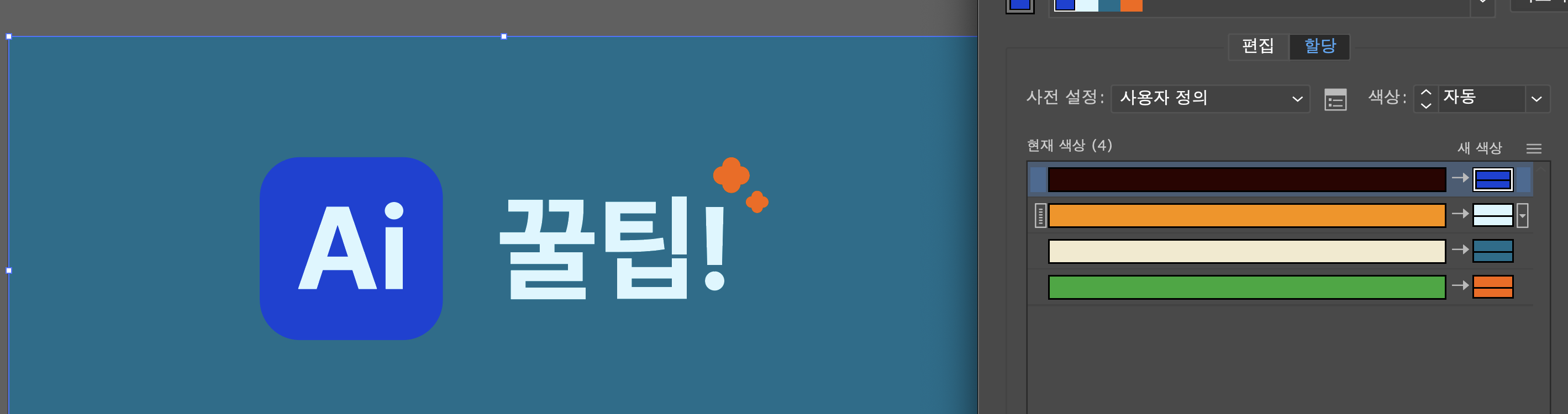 여러군데에 사용된 색상을 한꺼번에 일괄적으로 원하는 색상으로 변경하기입니다!